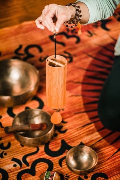 Simply unwind with the healing sounds of Tibetan singing bowls, gongs, crystal bowls, drums, chimes and tuning forks.